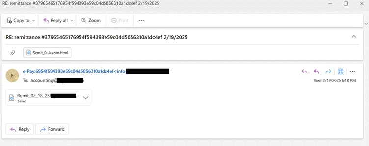 In het onderstaande voorbeeld ziet u dat de aanvaller sociale engineering-tactieken gebruikt, zoals het suggereren dat de e-mail afkomstig is van Accounting in verband met betalingsdetails, om de ontvanger te verleiden om op de link in de bijlage te klikken. Door de schadelijke link in de bijlage in te bedden, wordt het moeilijker voor oudere technologieën (zoals SEG's die sterk afhankelijk zijn van signatuurgebaseerde detectie) om de schadelijke link in de bijlage te identificeren.