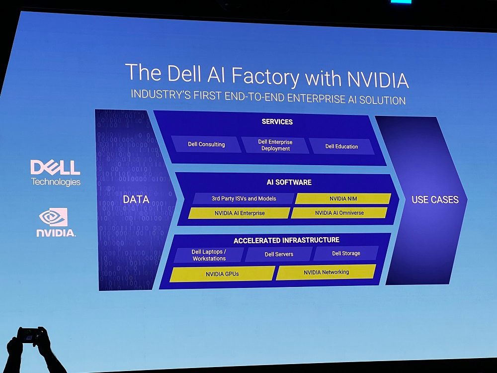 De Dell AI Factory met NVIDIA integreert het AI-portfolio van Dell met het NVIDIA AI Enterprise- softwareplatform, ondersteund door NVIDIA Tensor Core GPU's, NVIDIA Spectrum-X Ethernet-netwerkfabric en NVIDIA Bluefield DPU's. Klanten kunnen geïntegreerde mogelijkheden aanschaffen die zijn afgestemd op hun behoeften of vooraf gevalideerde, full-stack-oplossingen om ze op weg te helpen met AI-gebruiksscenario's die versnelde prestaties vereisen, zoals RAG, modeltraining en gevolgtrekking. Dankzij verbeteringen aan de Dell AI Factory met NVIDIA kunnen organisaties: