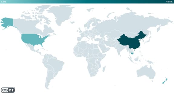 Geografische spreiding van slachtoffers van PlushDaemon sinds 2019