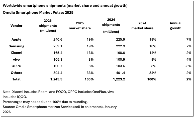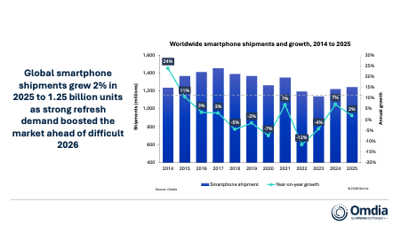 Omdia: 2% groei voor smartphonemarkt in 2025