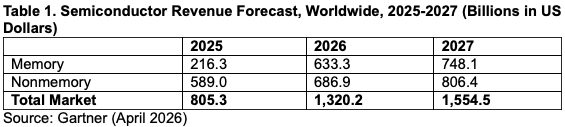 Gartner voorspelt dat de omzet in de halfgeleidersector in 2026 met 64% groeit. De omzet uit geheugenchips verdrievoudigt naar verwachting als gevolg van memflation. Volgens analisten van Gartner is memflation ingrijpend, maar niet blijvend. De jaarlijkse prijzen van DRAM- en NAND-flashgeheugen stijgen in 2026 naar schatting met respectievelijk 125% en 234%. Een significante prijsverlichting wordt niet verwacht voor eind 2027.