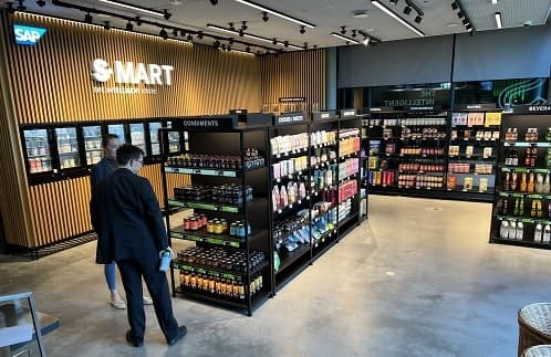 Sinds eind 2022 is er een intelligente S.MART-winkel in het SAP Experience Center in Walldorf, Duitsland. Bezoekers kunnen als een klant door de gangpaden van de supermarkt lopen en vervolgens in realtime backoffice-analyses krijgen. Tijdens de Future of Business summit van SAP in het Duitse Walldorf eind september 2023 mocht de redactie van Dutch IT Leaders een kijkje nemen.